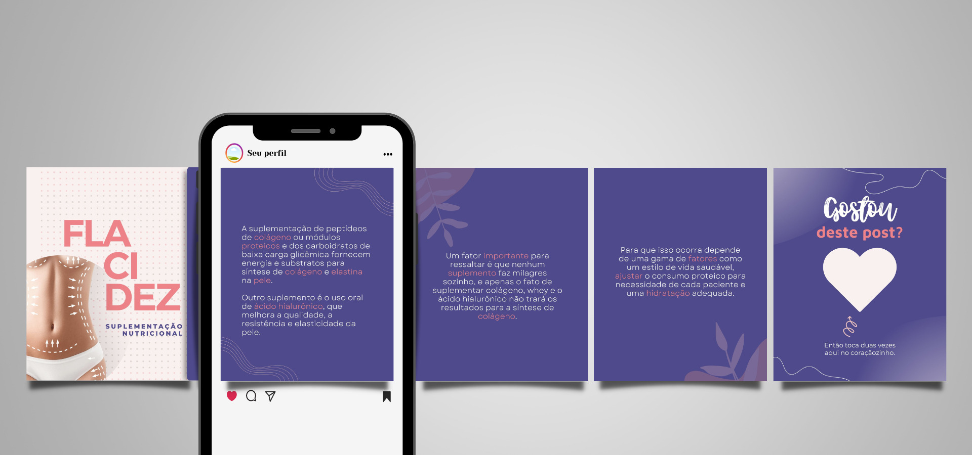A maioria das pessoas perdem muito tempo criando uma única arte ou até mesmo pensando no que postar. Com o nosso Pack Nutrição, você irá reduzir o seu tempo de criação e poderá dedicar mais horas para nutrir e prospectar mais pacientes.